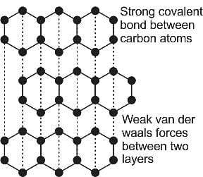 Molecules of carbon are held together by which of the following bonds in Graphite?
