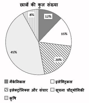 निम्नलिखित वृत्त आलेख एक इंजीनियरिंग कॉलेज में विभिन्न स्ट्रीम में पढ़ने वाले छात्रों की संख्या का प्रतिशत दर्शाता है। कॉलेज में कुल 5000 छात्र हैं।