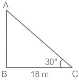एक पेड़ तूफान के कारण टूट जाता है और टूटा हिस्सा झुक जाता है, जिससे पेड़ का शीर्ष जमीन के साथ 30° का कोण बनाते हुए जमीन को छूता है। पेड़ के आधार से उस बिंदु के बीच की दूरी जहां शीर्ष जमीन को छूता है 18 मीटर है। पेड़ की ऊंचाई ज्ञात कीजिये (मीटर में)