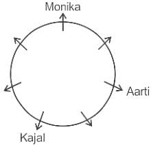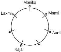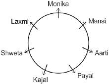 सात लड़कियाँ मानसी, श्वेता, मोनिका, पायल, आरती, काजल और लक्ष्मी एक वृत्ताकार मेज के चारों ओर केंद्र के विपरीत दिशा के सम्मुख होकर बैठी हैं (आवश्यक नहीं कि इसी क्रम में हों)। आरती, काजल के बाएँ से दूसरे स्थान पर है। मोनिका, काजल के दाएँ से तीसरे स्थान पर है। मानसी, काजल की निकटतम पड़ोसी नहीं है। लक्ष्मी, मानसी के बाएँ से दूसरे स्थान पर है। पायल, लक्ष्मी की निकटतम पड़ोसी नहीं है
