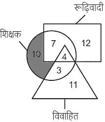 दी गई आकृति में, कितने शिक्षक न तो विवाहित हैं और न ही रूढ़िवादी हैं?