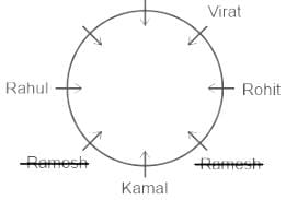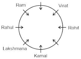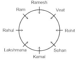 आठ लड़के विराट, रोहित, कमल, लक्ष्मण, राहुल, राम, रमेश और सोहन एक वृत्ताकार मेज के चारों ओर केंद्र की ओर मुख करके बैठे हैं (लेकिन जरूरी नहीं कि इसी क्रम में हों)। राहुल, कमल के बाएँ दूसरे स्थान पर है। कमल, विराट के बाएँ तीसरे स्थान पर है। लक्ष्मण, राम के दाएँ दूसरे स्थान पर है। रोहित, कमल के दाएँ दूसरे स्थान पर है। रमेश, कमल का निकटवर्ती पड़ोसी नहीं है। विराट, राम के बाएँ दूसरे स्थान पर है। सोहन के दाएँ दूसरा कौन है?