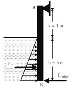 The force applied to the plate by the ridge is (in kN). Use ρw = 1000 kg/m³ for calculations.