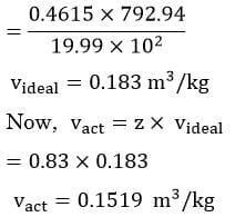 Assuming water vapour behaves as an ideal gas, the actual specific volume of water vapour is __________ m3/kg (Round off to three decimal places).