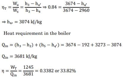h3 = 3674 kJ/kg, h4 = 2960 kJ/kg, hs = 3273 kJ/kg