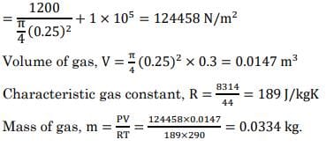 A cylinder with a diameter of 25 cm is equipped with a frictionless piston and is initially loaded with a weight of 1200 N. The piston starts at a position 30 cm above the bottom, and the area below the piston contains CO2 gas at a temperature of 290 K. An electric heater supplying 3600 J of heat is used during the process, with the assumption that no heat is lost to the environment. Determine the distance (in mm) that the piston will move outward while heating for a duration of 1 hour. Consider the barometric pressure to be 1 bar and the specific heat capacity (Cp) of CO2 to be 820 J/kg — K.