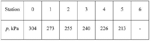 . The fluid pressures, p, measured at different stations are shown in the table below. The length of the pipe, l, from station 0 to station 6 is 6 m.