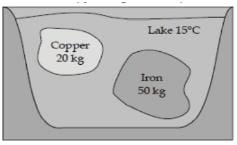 An iron block weighing 50 kg and a copper block weighing 20 kg,