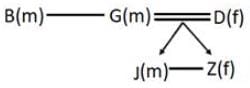 B is the brother of G. Z is the sister of J. J is the son of D. G is the father of Z. How is D related to B?