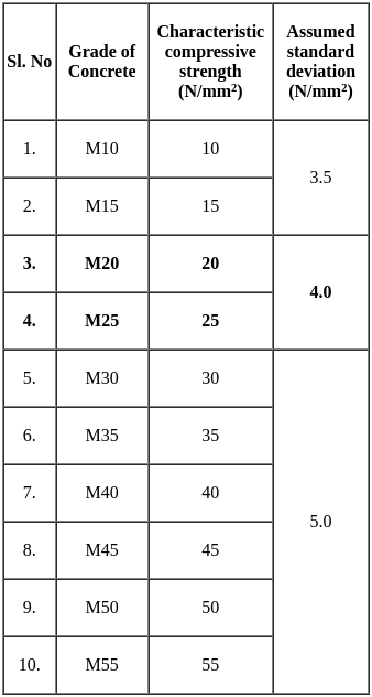 A. The standard deviation for M 15 concrete is 4.0 N/mm2 in case of concrete mix.