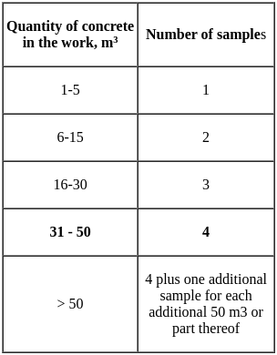 B. A minimum 2 samples should be tested for 15 m3 of concrete.