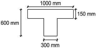An isolated T-beam is used as a walkway. The beam is simply supported with an effective span of 6 m. The effective width of the flange for the cross-section shown in the figure is: