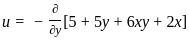 The stream function of the flow field is given by the equation ψ = 5 + 5y + 6xy + 2x. The value of the x-component of the velocity 'u' will be