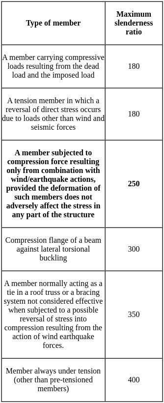 What is the maximum permissible slenderness ratio of a major compression member which undergoes a reversal of stress due to wind load so the deformation of such members does not adversely affect the stress in any part of the structure?
