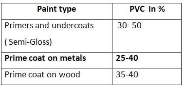 The PVCN (Pigment Volume concentration number) range of paint for prime coat on metals is?