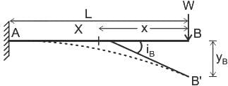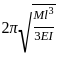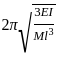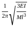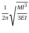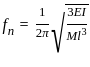 A cantilever beam with a load acting at end point. The mass 'M' is attached at the end of the beam. The frequency of the beam is given as _____.