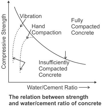 b) The strength of fully compacted concrete is directly proportional to the water cement ratio.