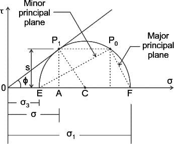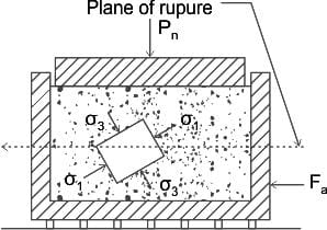 Which component represents the minor principal stress in the Mohr’s circle of a direct shear test?
