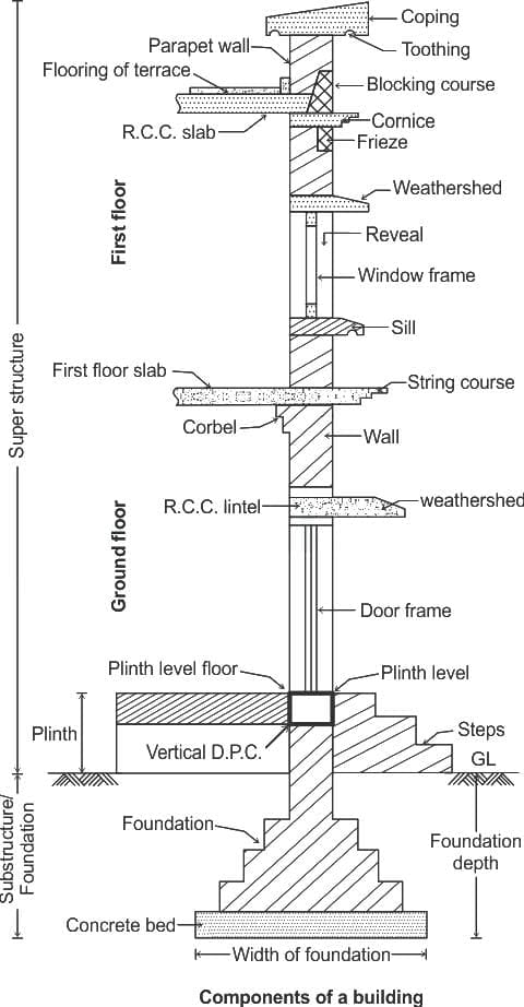 iv) The exposed horizontal surfaces at right angles to the door or window frames are known as jambs.