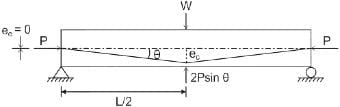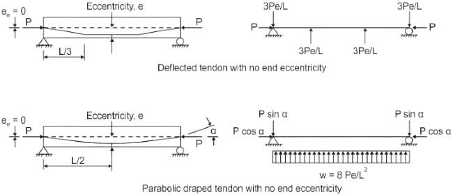 The net downward force of prestressed concrete beam with bent tension is given as:
