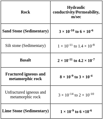 Rank the following for usual ranges of hydraulic conductivity in descending order of values:
