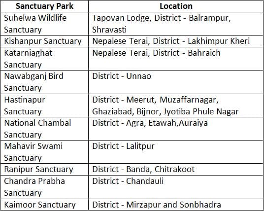 In which district of Uttar Pradesh is Chandra Prabha wildlife sanctuary located?