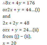 The cost of 8 pens and 4 pencils is Rs. 176 and the cost of 2 pens and 2 pencils is Rs. 48. What is the cost of one pen?