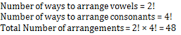 शब्द DESIGN के अक्षरों कितने भिन्न प्रकार से व्यवस्थित किया जा सके जिससे स्वर दोनों अंत पर हों?