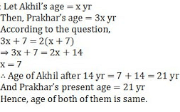 इस समय प्रखर अखिल की आयु का तीन गुना है| 7 वर्ष बाद, प्रखर अखिल की आयु का दुगना होगा, तो प्रखर की आयु, अखिल की अभी की आयु के सम्बन्ध में अगले 14 वर्ष बाद कितने गुना होगी?