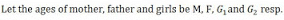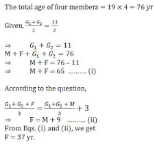 दो लड़कियों और उनके पिता की औसतन आयु उन दो लड़कियों और उनकी माता की औसतन आयु से 3 वर्ष अधिक हैं| उन चारों की औसत आयु 19 वर्ष है, यदि दो लड़कियों की औसत आयु 5.5 वर्ष है तो पिता की आयु ज्ञात करें?