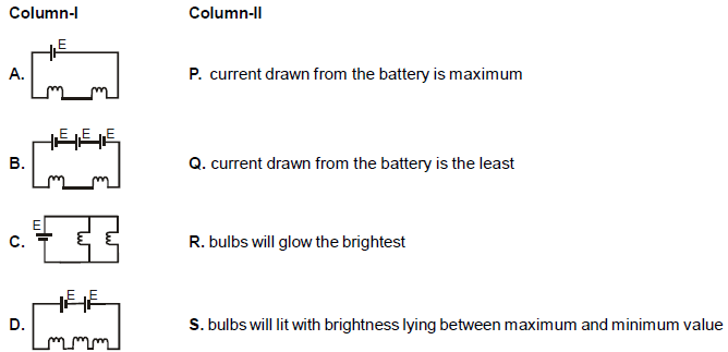 In the circuits drawn in column-I of the following table, all the bulbs are identical. Match the entries of column-I with entries of column-II :