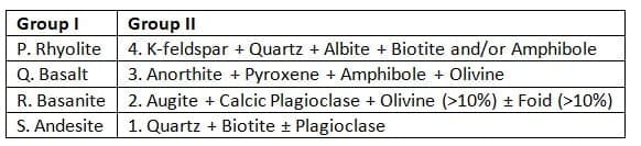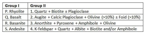 Match rock with their characteristic mineral assemblage: