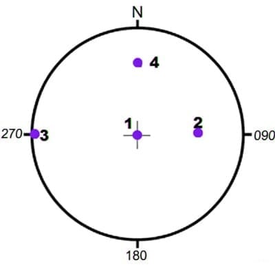 A slickenside present on a vertical plane is perpendicular to the strike of the plane. The representation of the slickenside on stereographic net is ________.