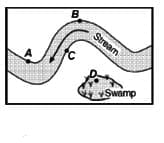 In the given diagram which point has the maximum erosive potential for causing the flood?