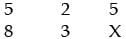 The resultant of row-2 is= 37-15=22 So, the value of X must be 2.