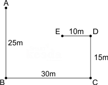 Point D is 15 m north of point C.