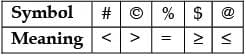 Directions: In the following questions, the symbols @, #, %, $ and © are used with the following meaning as illustrated below