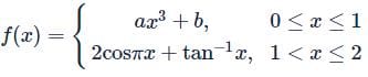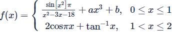 is a differentiable function in the interval (0, 2), then the value of [a + b] equals, ([⋅] represents greatest integer function)