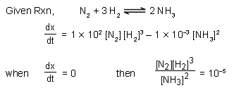 In the reaction N2 + 3H2 ⇌ 2NH3