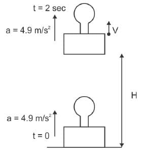 A man in a balloon rising vertically with an acceleration of 4.9 m/sec2 releases a ball 2 sec after the balloon is let go from the ground. The greatest height above the ground reached by the ball is (g = 9.8 m/sec2)