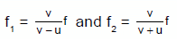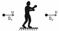 Two sources S1 and S2 of same frequency f emits sound. The sources are moving as shown with speed u each. A stationary observer hears that sound. The beat frequency is (v = velocity of sound)