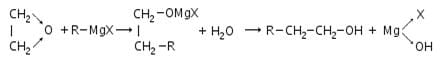 Ethylene oxide, when treated with Grignard reagent, yields
