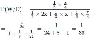 A person has to catch a train. To catch train, from his home he can take a taxi or take rickshaw or walk by foot with respective probabilities 1/2,1/3,1/6. Probability of him catching train when he takes rickshaw from his home is half that of when the takes the taxi and probability of catching the train when he walked by foot is 1/4 th that of when he takes rickshaw. He finally reached the train, the probability he walked by his foot to catch the train, is