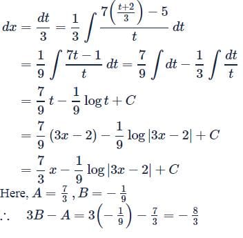 = x + 4,x ≠ −5/3,2/3 and ∫f(x)dx = Ax + Bln|3x−2| + C, then 3B − A =
