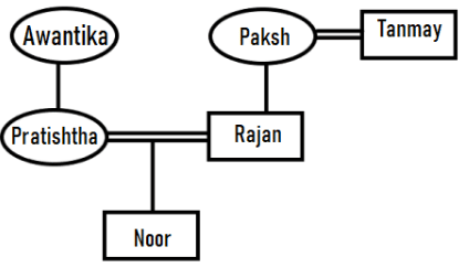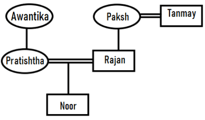 There are 3 generations in a family of 6 members. Noor is a grandson of Paksh who is married to Tanmay. Awantika is the mother of Pratishtha who is married to Rajan. Tanmay is the father of Rajan but Rajan is not a daughter of Paksh.