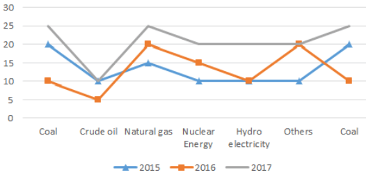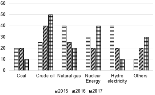 Percentage of imports to consumption of different sources of energy during 2015 to 2017