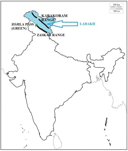 Which mountain range is found between Karakoram mountain range and Pir Panjal mountain range?