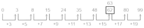 0, 3, 8, 15, 24, 35, 48, 62, 80, 99