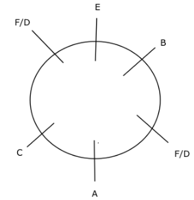 Direction: Six friends A, B, C, D, E and F are sitting around a circular table facing the center of the table. Further, the following information is also known