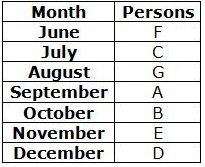 Seven persons - A, B, C, D, E, F and G were born in seven different months of the same year viz., June, July, August, September, October, November and December, but not necessarily in the same order.